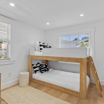 First-floor den/bedroom: Features a bunk bed with two twin size beds to accommodate 2 guests. PLEASE NOTE - Dresser for clothing storage as there is no closet in the room.